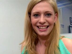 Kleine blonde Süße gibt ihren analen Trieben beim Casting nach