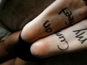Gefesselte Sekretärin wird mit nackten Füßen vollgespritzt